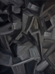 2016Bij dit schilderij heb ik me laten sturen door steeds opnieuw te luisteren naar delen 3 en 4 van Sonate voor cello en piano in C majeur, opus 119 van Prokofiev, uitgevoerd door Harrel en Ashkenazy. Het derde deel is langzaam met contrast tussen de overwegend donkere klanken van de piano an de kwetsbare hogere tonen van de cello. Het vierde deel is veel sneller, lichtvoetiger en meer staccato.